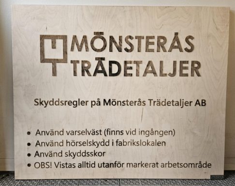 Med vår diodlaser erbjuder vi noggrann och flexibel gravering i större format. Som till exempel den här skylten i plywood. 800mm x 600mm